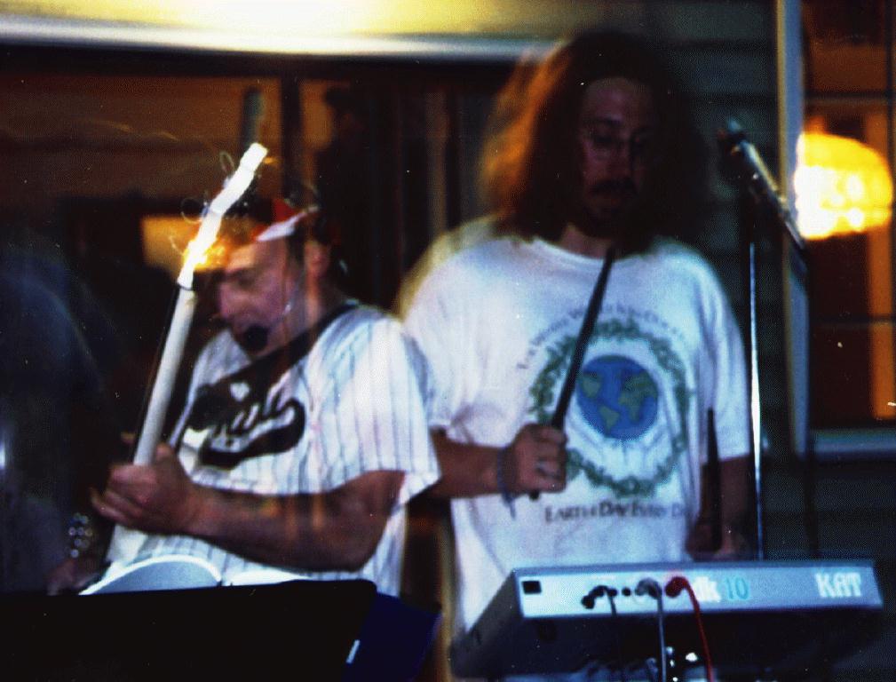 Every year, the illustrious Dave Haynie (also known as "Hazy Dave") throws a party at his house. Along with the usual crowd of heavy drinkers, some musicians usually show up, often with a good supply of electrical equipment. A couple of years ago, Dave built a stage for us, um, I mean a porch for his family, and we set up there and play until the Police come. Then we move into his garage and keep going.